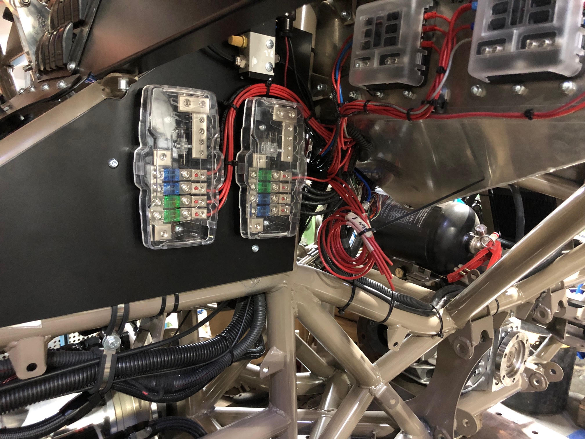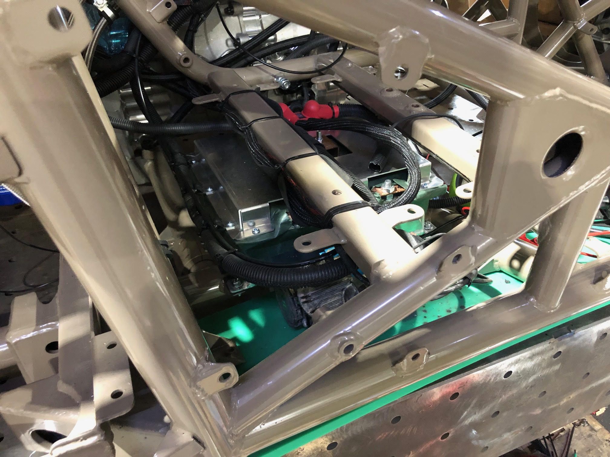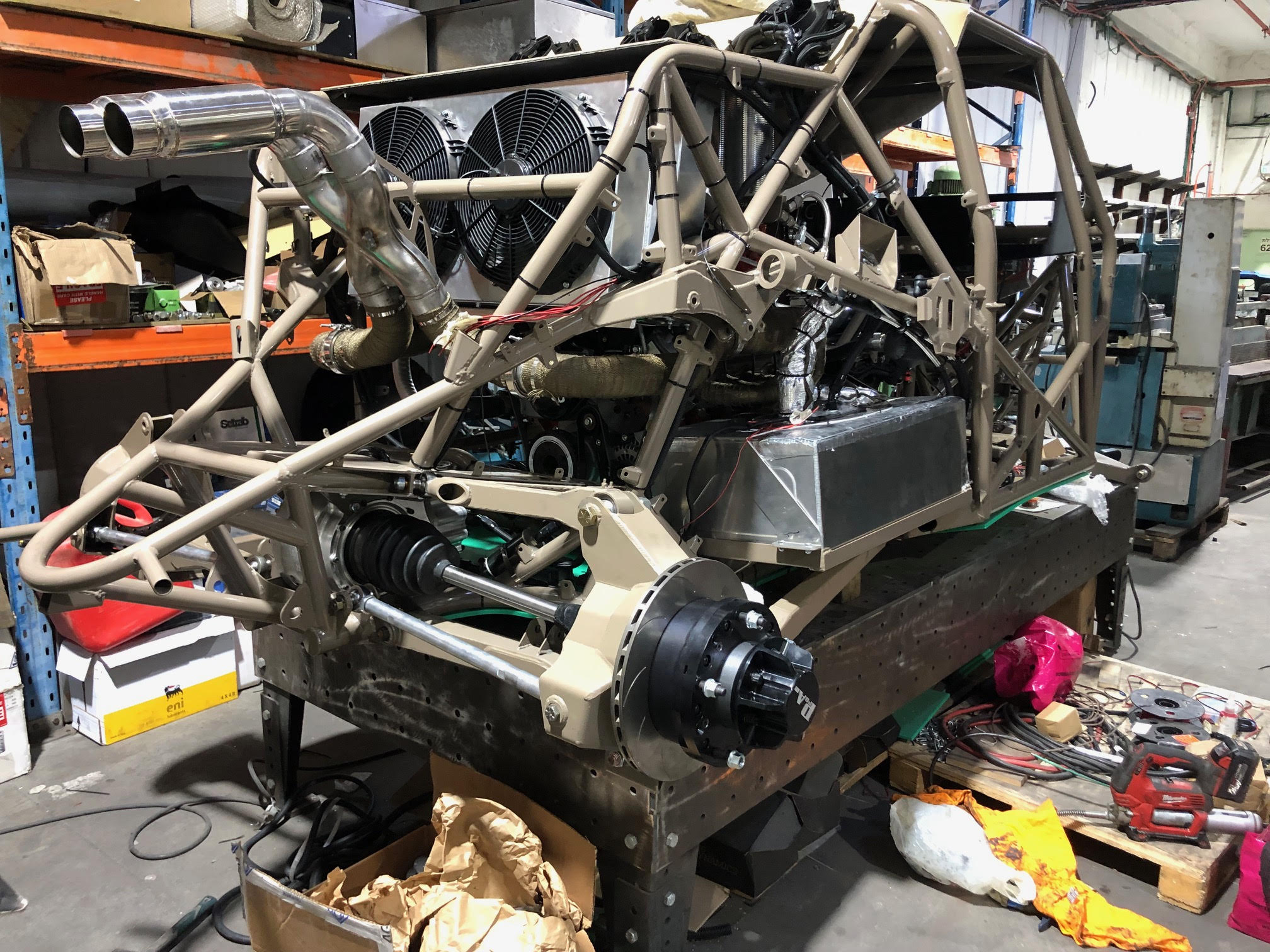 שלב החשמל והצנרת בעיצומו, כשהחרא שלב הזה יגמר(כי צריך המון עצבים בכדי לא לחפף) יהיה אפשר להניע ,לבדוק שהכול פועל, לא מתחמם ומסתובב לכיוון הנכון... אחר כך יגיע שלב החיפויים ,המתלים -גלגלים -בולמים והפנסיה.