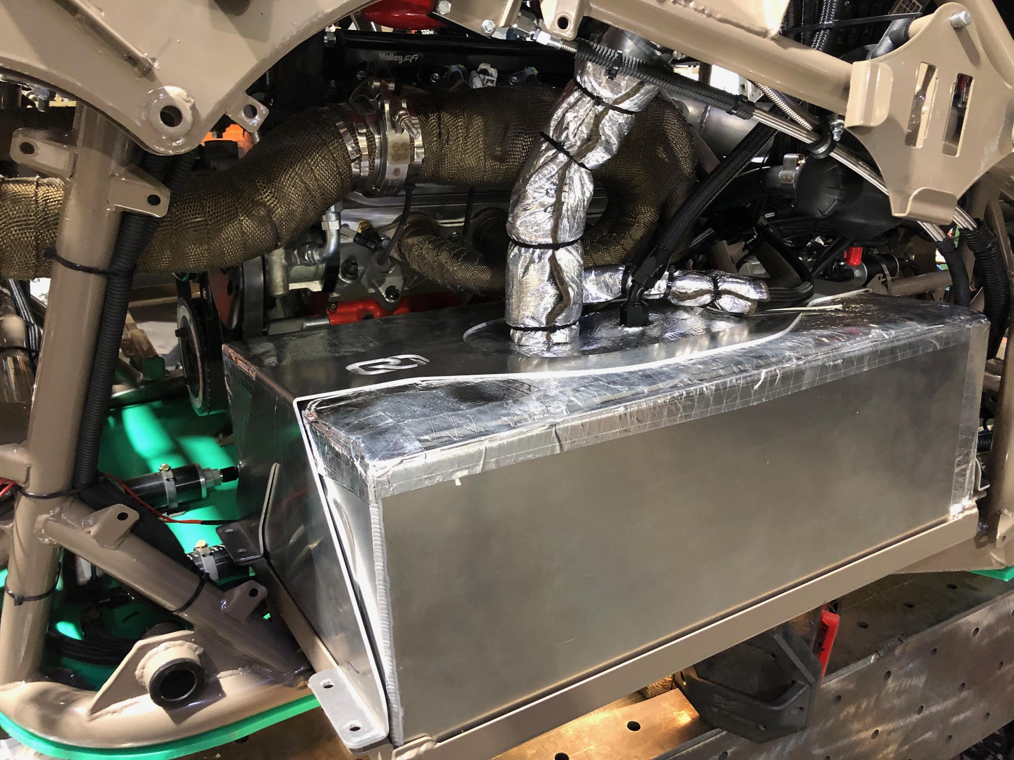 כיסוי אחד ממכלי הדלק ביריעה מבודדת חום ואש , וזה בכדי שאפשר יהיה למלא דלק וללחוץ על כפתור ההנעה.