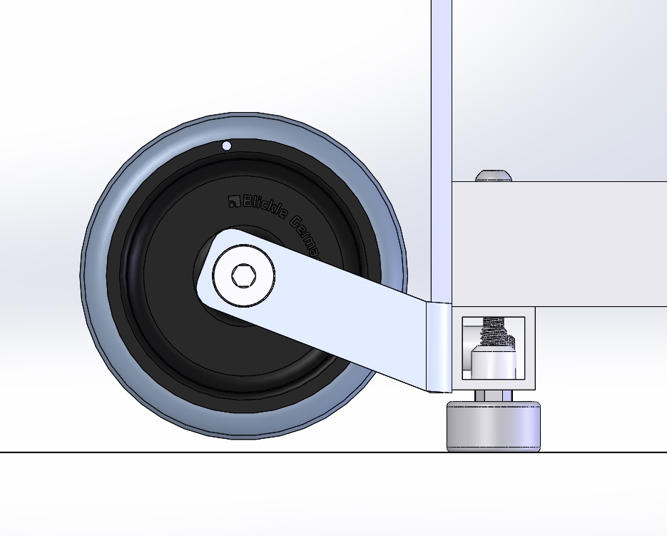 4 רגליים (מתכווננות או לא) וזוג גלגלים שגבוהים מעט מהרצפה במצב רגיל, כך שאתה מטה את השולחן מעט, המשקל עובר לגלגלים ואתה מזיז את השולחן כמו מריצה. ראה סקיצה אפשר מן הסתם להשתמש בגלגלים רגילים: