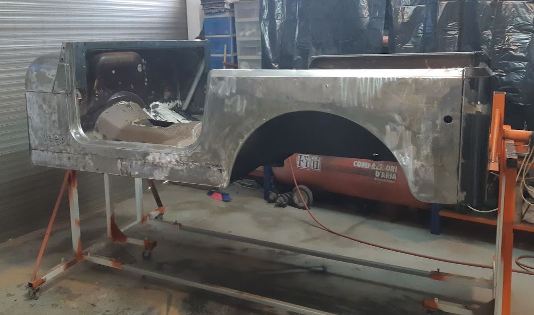 אני בסופו של דבר הגעתי למתכת חלקה על הג'יפ מבחוץ, עם דיסקים Strip and clean. במשטחים פנימיים ובתחתית הרכב איפה שלא היה מעשי לעבוד עם הדיסקים האלו, איפה שהצבע היה טוב עברתי עם מברשת פלדה להוריד את כל מה שרופף עד כמה שאפשר. ויש בסופו של דבר פינות עם זפת שאין באמת דרך להגיע אליהן. שטיפות חזקות עם גרניק. יבוש בשמש. ניקיתי את הסדנא יסודי כולל ספונג'ה, כיסיתי את ניילונים וסדינים כל מה שאפשר, והכנסתי את המרכב בחזרה פנימה. לפני הצביעה ניגבתי את הכל עם אלכוהול ו/או אצטון עד שהתעלפתי כמה פעמים, אז אני לא זוכר הרבה. ואז אפוקסי. ואז איטום תפרים. ואז עוד אפוקסי.