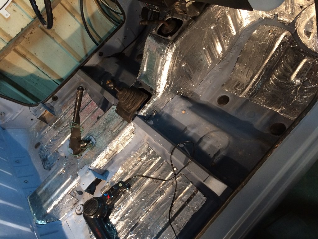 השלב הבא היה איטום הקבינה מחום ורעשים. לצורך כך, נבחרו יריעת זפת ביטומנית עם שכבת אלומניום בעובי כולל של 2 מ"מ~. להזכירכם, כחלק ממאמץ הבידוד תחתית הקבינה קיבלה שכבת זפת מהצד החיצוני והפנימי לפני הדבקת היריעה.