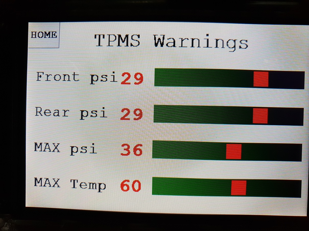 יש פה סלידרים שמאפשרים לקבוע את ההתראות של לחץ מקדימה, לחץ מאחור, לחץ מקסימלי, וטמפ' מקסימלית בצמיגים.