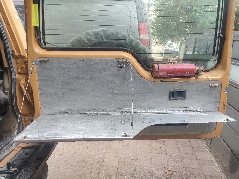 השולחן מוחזק במצב מקופל עם תפסים של דלתות וכיוון שזה מעט רועד לפעמים, יש גם בורג פרפר אחד.
