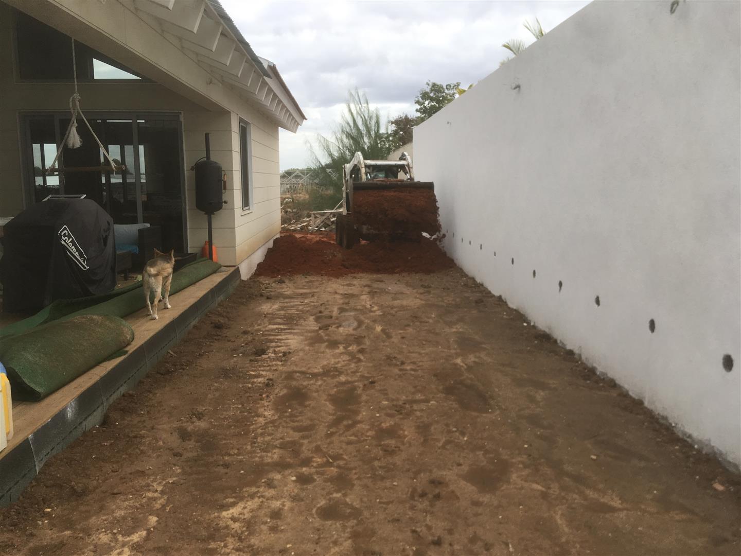 ומכניסים אדמת מילוי לחצר (ובהמלצת האגרונום, אדמת חמרה חולית)