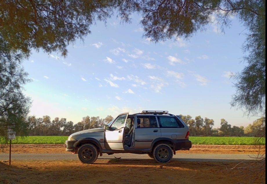 לפני החושך הגענו לכביש הערבה, מילאנו אוויר וקצת ניקינו חלונות ופנסים, ונתנו נסיעה להמבורגר במוזה בערד בדרך הביתה.