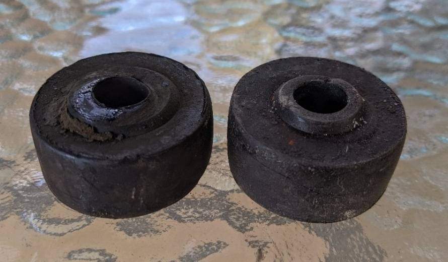 אם הבולם מותקן בזווית לא נכונה, הפנים של הבושינג יקרע ראשון ואז יראו סימני שיפשוף על הברזל.