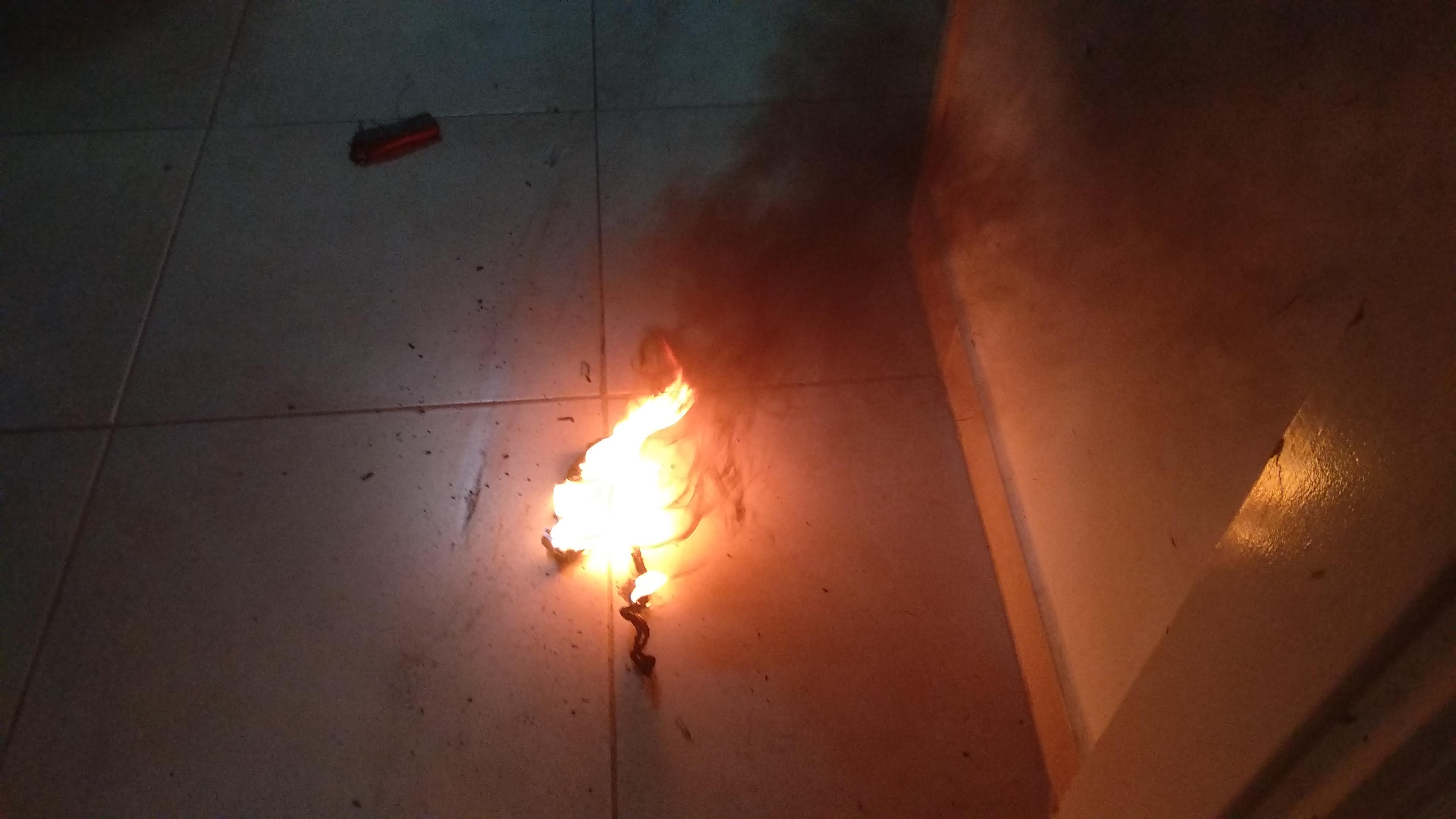 שעה ארוכה עמלנו לנקות את שרידי הבעירה והפיח. כרגע כל הקומה מסריחה.