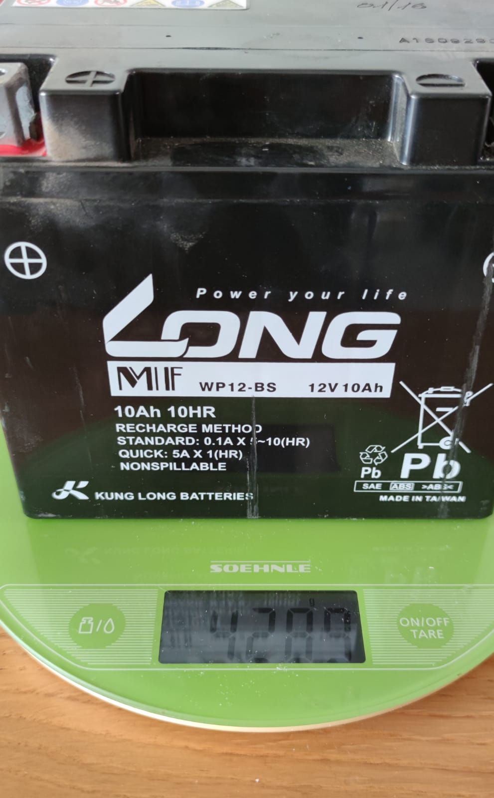 מצבר (של קטנוע אמנם) 10AH שוקל כ- 4.3 ק"ג.