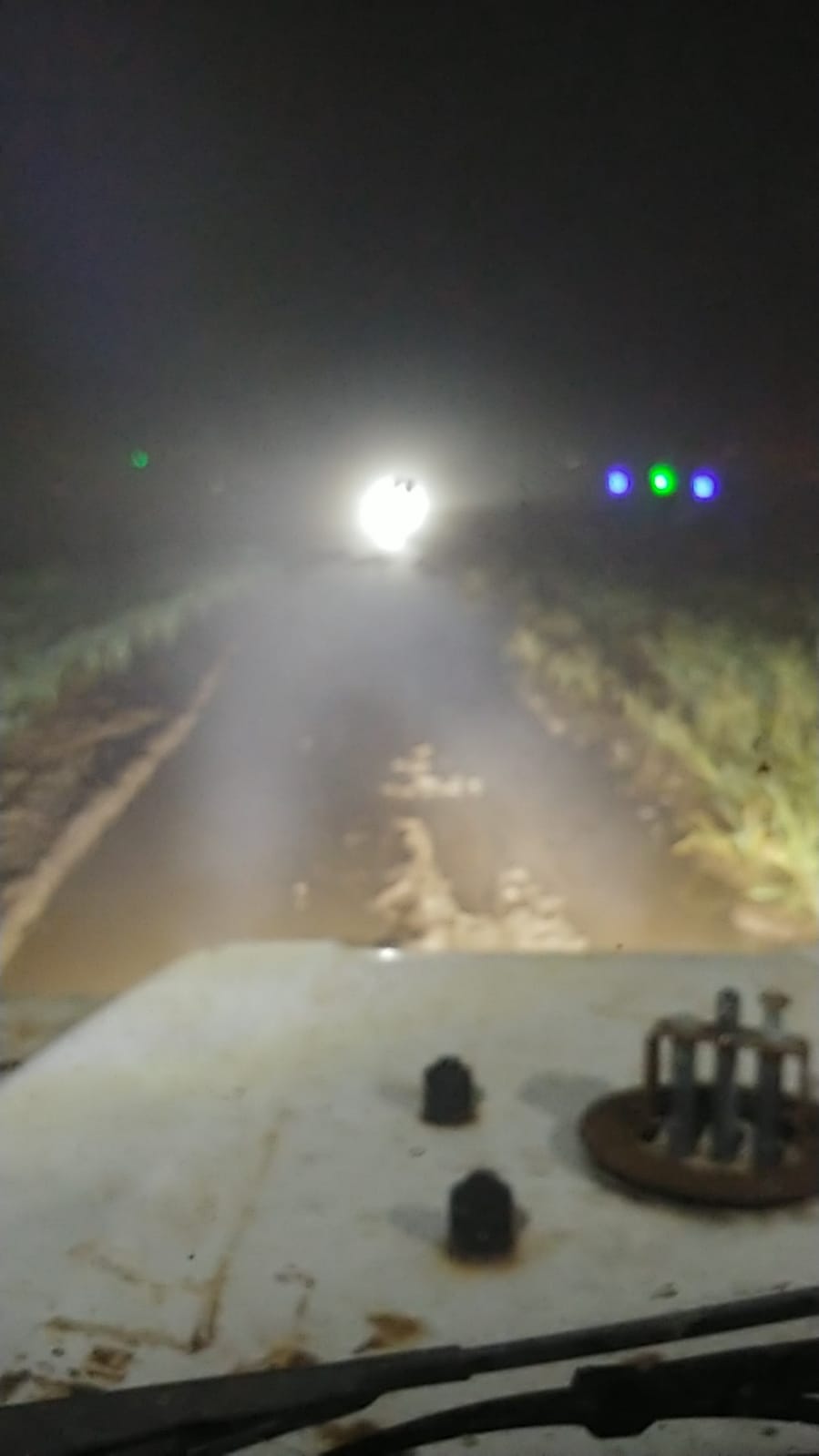 השעה כבר 01:30, ערפילי העמקים החלו להסתיר את הירח שהאיר במחצית מילואו. החלטנו לגרור את השקועים לחוד. מתחברים למצב "רכבת" ומושכים. הגרירה התקדמה לאט לאט, מרחוק ראינו את אורות הפג'ארו הנגרר של אמיר עולים ויורדים, כמו הייתה זו ספינה בים גלי. גדר התעלה של המוביל הארצי הגבילה את קטע הגרירה ל- 30 מטרים. לכן נאלצנו פעם אחר פעם לעצור ולנתק חלק מהרצועות כדי לקצר טווח אל הנגרר. נותרו עוד 10 מ', אנחנו כבר רואים ושומעים את נהימת המנוע של הפג'ארו הנגרר מנסה בכל כוחו לסייע לנו, אבל כלום לא זז! כשחשבנו שהפג'ארו כבר תיכף בחוץ הוא התיישב על סלע שהיה חבוי בבוץ. ואם לא די בכך, הוא גם נכנס לשפ"צ לא נעים.