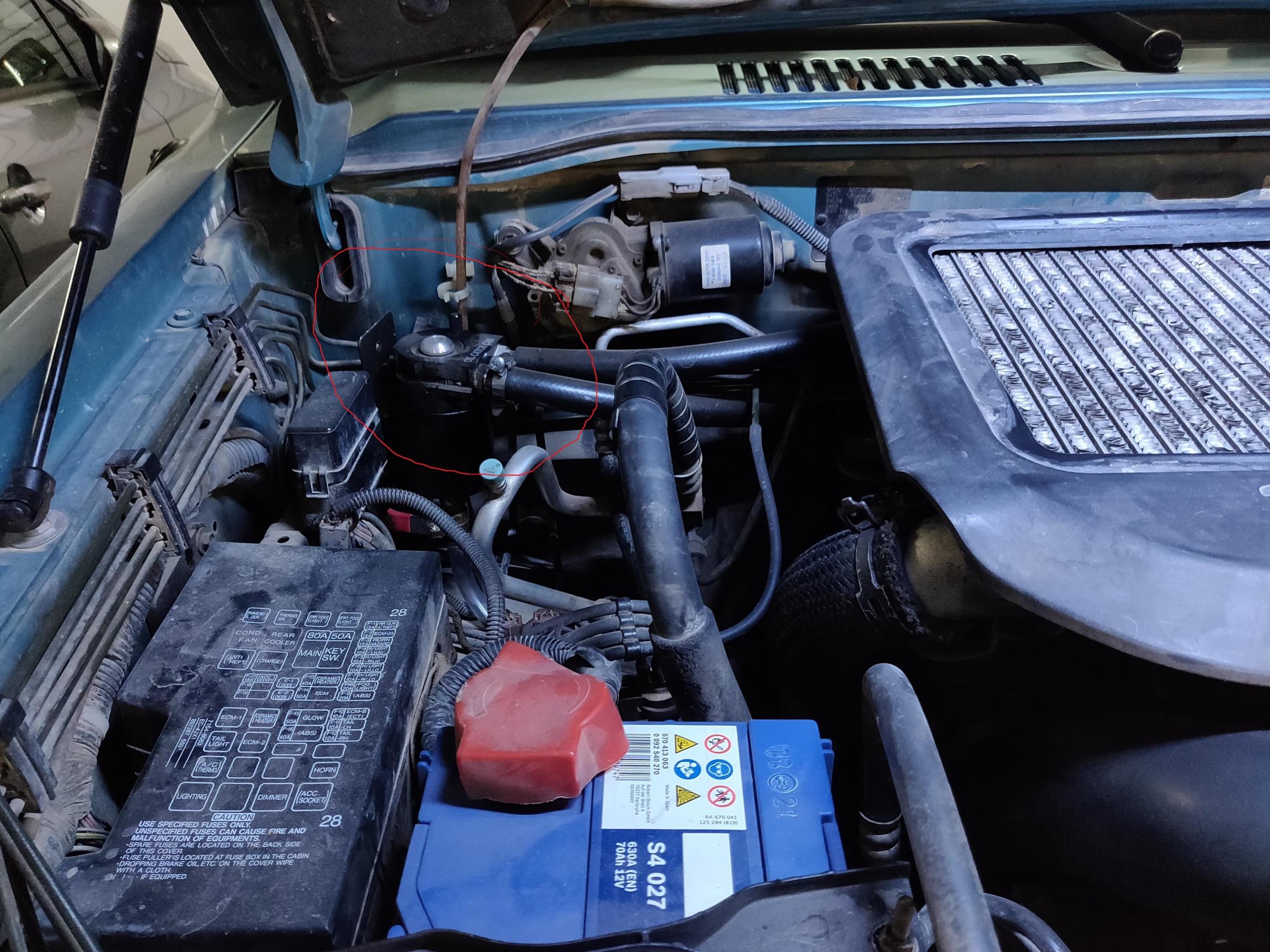 לאחר מכן, מיקמתי את הלוכד שמן שהיה לי (שהיה מורכב במיקום גבוה יחסית וגרם לטפטופי שמן) במיקום אחר בתא המנוע, מתחת לגובה צינור הנשם. אילתרתי מתאם מלוחית מתכת והרצתי צינורות לכניסה והיציאה של הלוכד (צינור באורך 1 מטר)