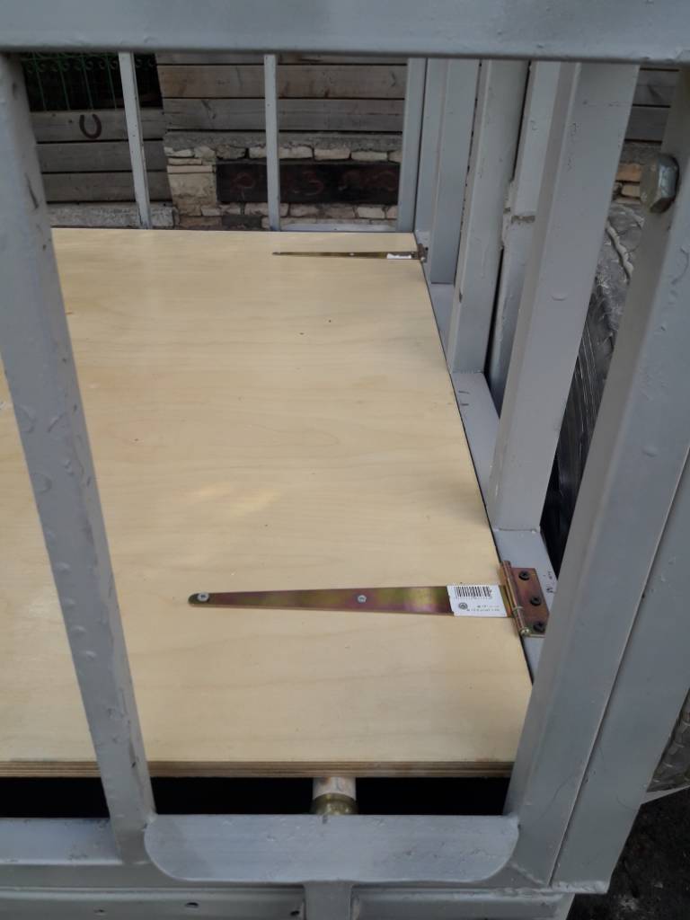 על המחיצה נבנו ארונות מבירץ' ימי דק יותר (9 מ"מ כמדומני) על מסגרת מפרופיל ברזל דק ומסיבי. רציתי שהארונות יהיו מסיביים ולא יתפרקו בטלטולי השטח. צמוד לארונות נבנה תא לאחסון מיכל המים הגמיש בנפח 120 ליטר.