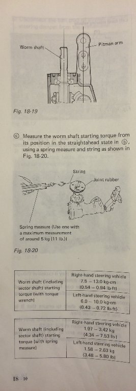 2. מדידת הpreload כאשר התיבה באמצע המהלך: לשם מדידת ה- preload (כוח שיש להפעיל עד שהעסק מתחיל להסתובב) של הsector shaft (מהגומיה שהולכת לכיוון ההגה), יש לכוון את התיבה לאמצע, כלומר זרוע הפיטמן מקבילה בדיוק לworm shaft.
