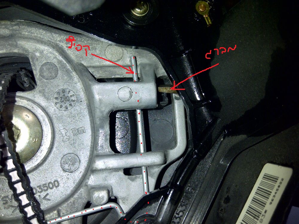 שלב רביעי - מזהים את המגעים של הצופר, ומנקים עם ספריי מגעים איכותי. לשים לב - יש מקרים שהחוטים של כרית האוויר לא עוברים טוב במקומם ומפריעים למגע של הצופר (זה מהפעם ההיא במוסך שפירקו לכם את ההגה כדי לגנוב את ה COM2000 שהיה תקין והחזירו את האוטו עם COM2000 לא תקין. מהמפעל החוטים יוצאים כשהם עוברים טוב ויפה במקומם, ואם לא פירקו את ההגה, אין שופ סיבה שהם לאיהיו תפוסים).