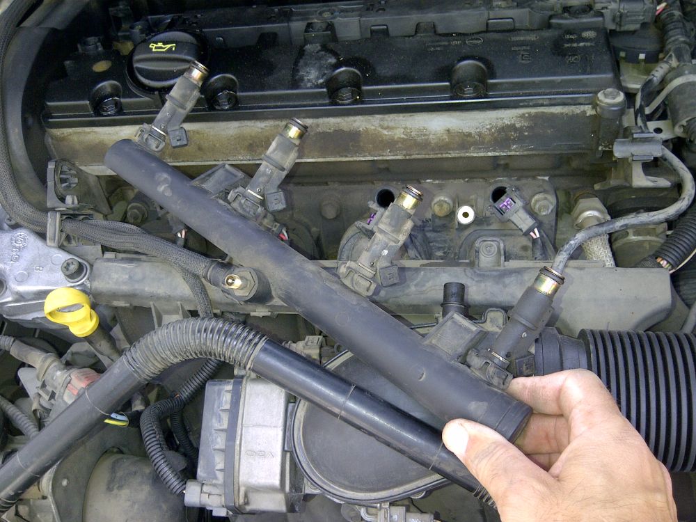 מהיכרות עם המנועים הקטנים יותר, אני חושד בסליל הצתה, אבל ליתר בטחון מתחבר למחשב. אדון פז'ו מודיע שיש תקלה במזרק מספר 4. כדי לבודד את התקלה ולהיות בטוח שהיא במזרק ולא בחיווט או בסליל, אני מחליף את מזרקים 1 ו 4.