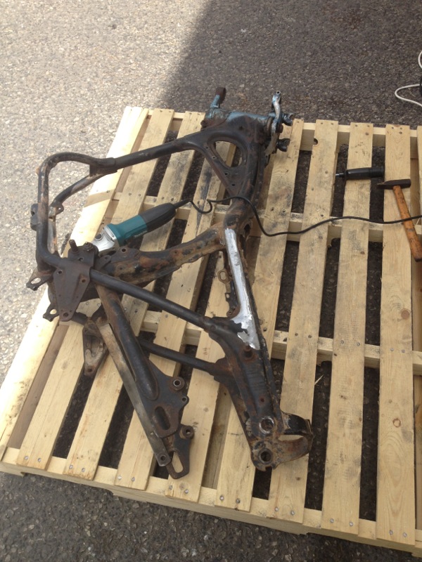 מתחילים לפרק - המטרה - להפשיט את האופנוע עד לרמת השילדה ומשם להתחיל להרכיב חזרה תוך החלפת חלקים רקובים, שינוי העיצוב (זה מה שעובר לי בראש, בערך), פרידה מכל מיני חלקי פלסטיקה מיותרים בדרך. צביעה מחדש וחיווט מחדש של כל מערכת החשמל. למנוע נגיע בסוף (ונקווה לטוב)