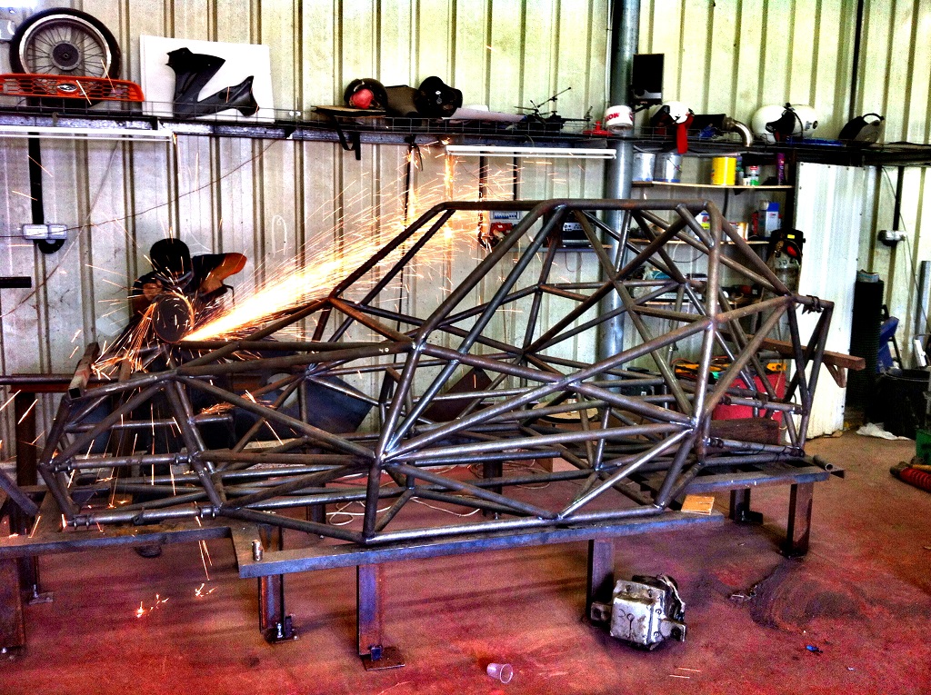 לאחר תפירת איזורי מפתח ב-TIG, הוכנס רכבת הכוח לצורך וידוא התאמה, דבר שהעלה מיד את הבעיתיות שבגובה חזית הרכב.