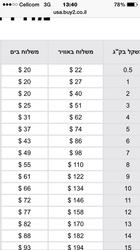 מחיר קילו אווירי ב buy2usa הוא 27 דולר
