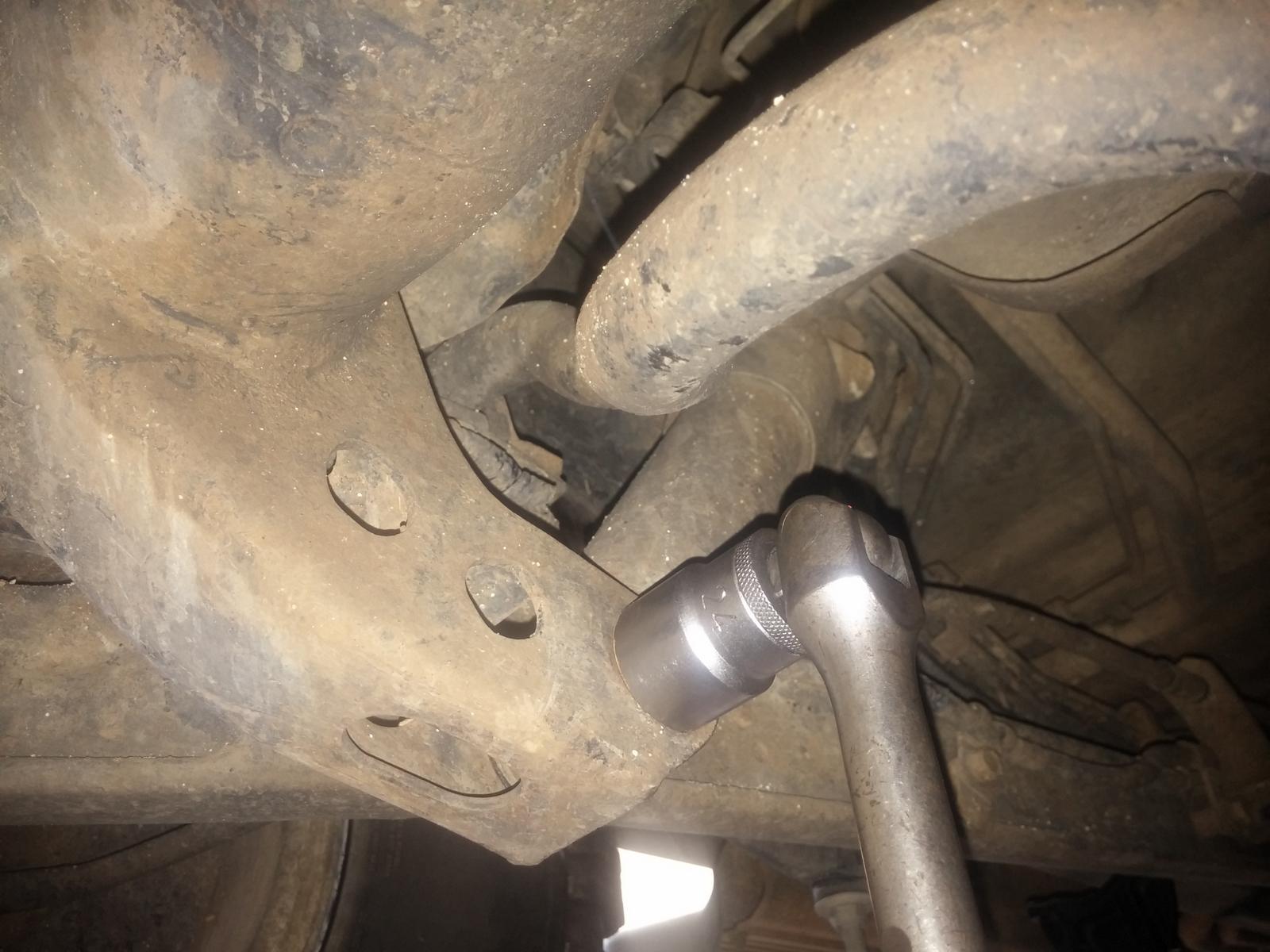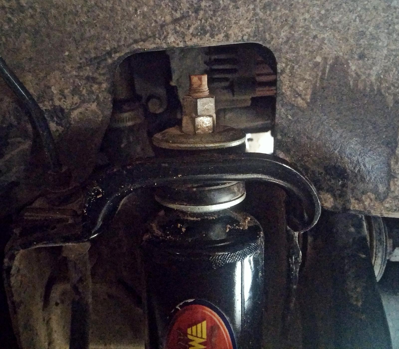 3.נפרק את הבולם הישן, בעזרת מפתח 14MM נשחרר את האומים העליונים ובעזרת בוקסה ומפתח 24 מילימטר נפתח את בבורג התחתון שמחובר לסרן – נחבר את האום והבורג ויחדיו ונניח בצד על מנת שלא יאבדו. הבולם החדש מגיע עם אומים עליונים חדשים כך שאין צורך כעת בישנים – נעביר אותם לארגז הכלים כחלק חילוף למקרה ויפתחו ההברגות בשטח. לאחר פתיחת האומים נדחוס עם היד את הבולם כלפי מעלה ונוציא אותו ממקומו.