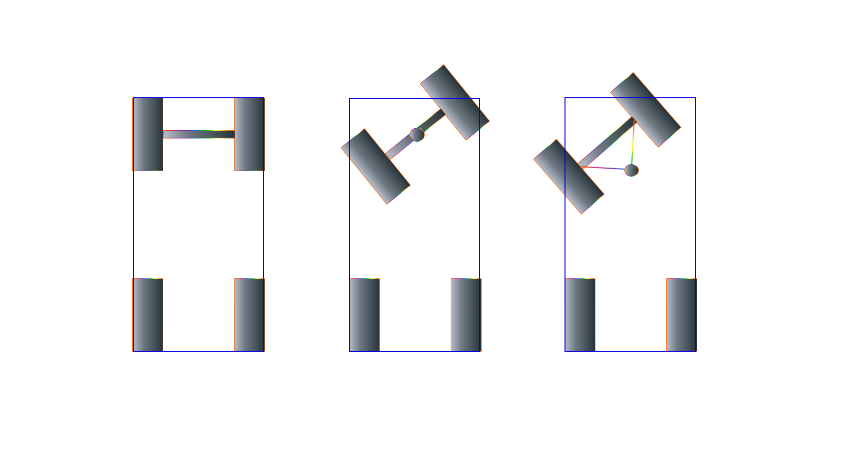 קפיץ אחד בלבד מקדימה הוא אילוץ של שיטת ההיגוי או שיש סיבה אחרת? אני מניח שהשארת לסרן אפשרות גלגול ביחס לרכב