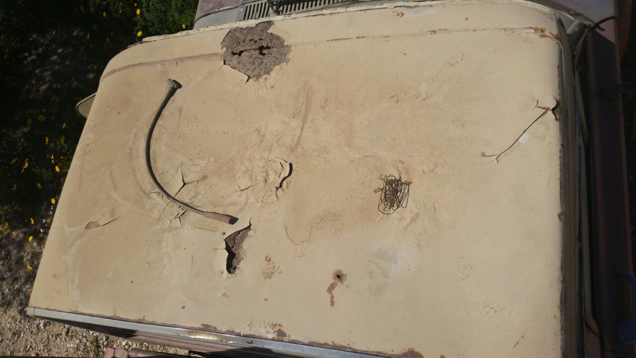 מבחינת פחחות המצב ממש לא משהו, יש הרבה חלודה, חור בגג [בתחילה הוא היה לא מכוסה, אחרי החורף הראשון הוא כוסה], אחרי שיפוץ המנוע ניתן לפחח לטפל בפחחות, בתקווה שאוכל לעזור לו וללמוד תוך כדאי.