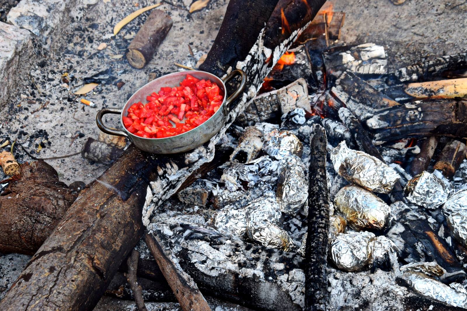 מומלץ להכין מדורה קטנה בעזרת סידור אבנים ופיזור מספר גחלים מתחת למחבת. ההורים מתבקשים להרחיק ילדים מאש המדורה.