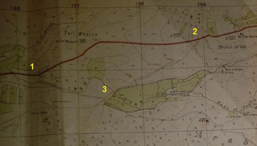 מעניין מאוד, תודה על המידע והחשיפה. התוואי המתואר באמת מוזר, ככל שעולים מצפון לנחל התוואי נהיה תלול וקשה למעבר. לא היה אפילו הרבה להתבלבל, הכביש המודרני מצפון לגעתון לא היה קיים, גם לתרשיחא הנסיעה היתה מדרום לנחל. אגב, יש סט מפות יותר מוקדמות של הבריטים (שנות השלושים נדמה לי) שנחשבות יותר טובות לצרכים כאלו. במעלה הכביש המודרני ממזרח לאזור המדובר נמצאת חורבת אשחר. היא מזוהה עם Kh. Abu Shureitih מהסקר הבריטי, זה שם שנשמע איכשהו קרוב. בעיני החובבן שלי על מפת PEF בעמוד ענן, Abu Shureitih דווקא נראית ממש מתחת לחורבת ואקיה.