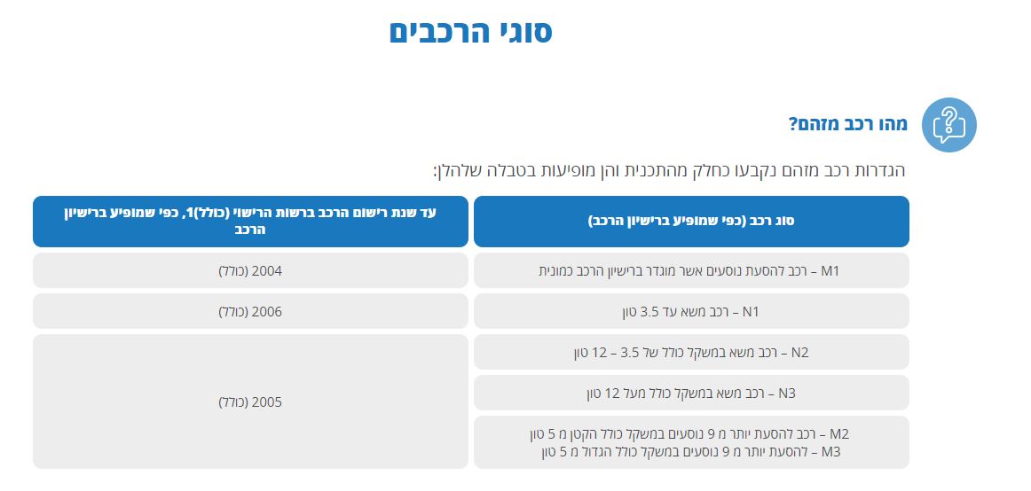 מסחרי N1 (טנדרים וגם ג'יפים שמוגדרים N1 ברשיון - הכי רלוונטי לנו!) - עד שנת ייצור 2006.