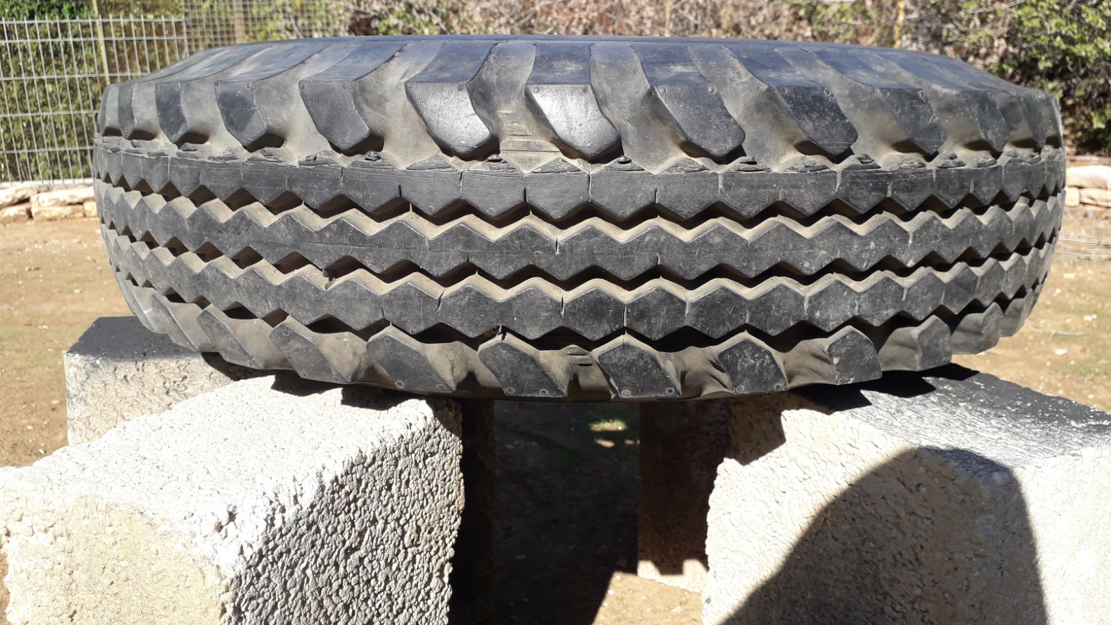 התמונה הראשונה היא של צמיג משאית קטנה שהשלדה ותא הנהג משמשים אותנו בפרוייקטים של כרייה/בניה שונים , ומפעם לפעם מחליפים לה את המטען : מערבל בטון/מיכלית מים. כשמגיעים אלינו כלים חדשים/חדשים באתר אני מתמגנט לצמיגים שלהם. אחת משיטות הכרייה היא פיצוצים. לאחר פיצוץ ואם הוא נעשה באדמה סלעית , התוצר הוא רסיסי אבנים/סכינים. שברי סלע יכולים להיות כמו סכינים מחודדות ולכן הכלים/צמיגים שנכנסים לאחר הפיצוץ צריכים להתמודד אתם בהצלחה . הראשון שנכנס לפנות ולהעמיס חומר ( מלבד באגר זחלילי ) הוא שופל גלגלים. לאחר בדיקה של צמיגי האתר התברר לי שכל הצמיגים של הכלים ( שלא מיועדים לכביש ) הם צמיגי NYLON .מהיום שעברתי ל 7.00-15 , כל הצמיגים שלי ( 23 ) הם צמיגי ניילון או ניילון/פלדה. גם צמיגי 6.00-16 שהיו לי על רכב קודם שהצלחתי לקנות עוד אצל גסנר בי-ם יוצרו כנראה עדיין באלייאנס חדרה והיו כנראה מניילון. הניילון למיטב הבנתי וכמו שנכתב כאן במדריך צמיגים , הוא חומר חזק מהפוליאסטר שנפוץ היום בצמיגים וגם אם הוא פחות נוח/סופג מהפוליאסטר בסמוראי עם קפיצי עלים עד כמה זה יכול להיות משמעותי.