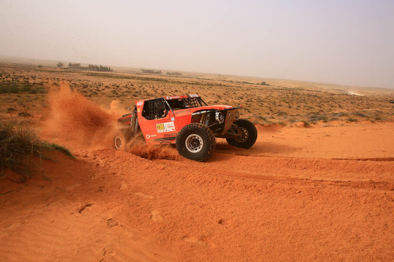 היה קשה ,אבל המכונה שלנו סלחנית לטעויות ,לא פעם התפוצצנו לתוך חריצים ,תעלות, באמפים ודרופים שבמהירויות תלת ספרתיות נהפכים לקירות , בומבות לצוואר ולגב, עם שחור וכוכבים בעיניים לשניה שתיים . מצד שני את היום השני למרוץ (שבת) אני כנראה לא אשכח לטובה המון זמן- היו ביום הזה שני מקטעים, אחד של 160 ק"מ והשני 115 ק"מ, האזור הוא אשלים -צאלים-אשלים . ביום הזה היתה הפעם הראשונה שבאמת נהניתי להתחרות ,אני וניצן בצרעה ,איל ויובל בליידי D (גם באגי קלאס 1) , טסנו כמו משוגעים , שבילים חוליים פתוחים,סיבובים ארוכים וגם הדוקים ,קפיצות בלי סוף ,הבאגי תפקדה למופת , בקושי נגענו בקרקע ,צחקנו בתוך הקסדות, עשינו זמנים מטורפים ,היה כיף . ביום האחרון הספקנו גם לבדוק כמה הבאגי "סוגרת" בשטח.