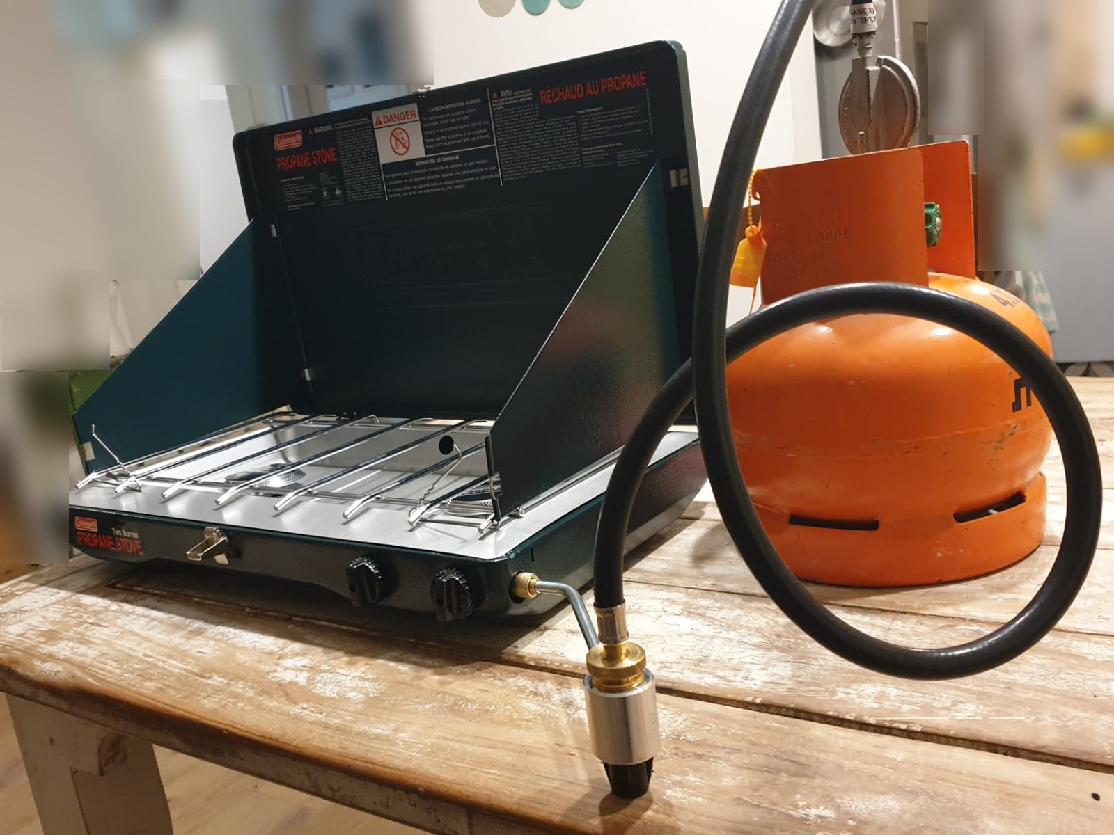 עוד שבוע יגיע המתאם (Coleman High-Pressure Propane Hose).