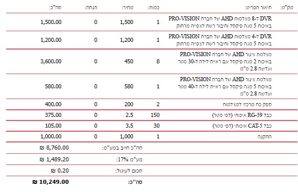 הפעם ההצעה אמנם יותר זולה אך שוב פיצול של DVR, ללא פירוט של היצרן והדגם של הDVR או המצלמות.