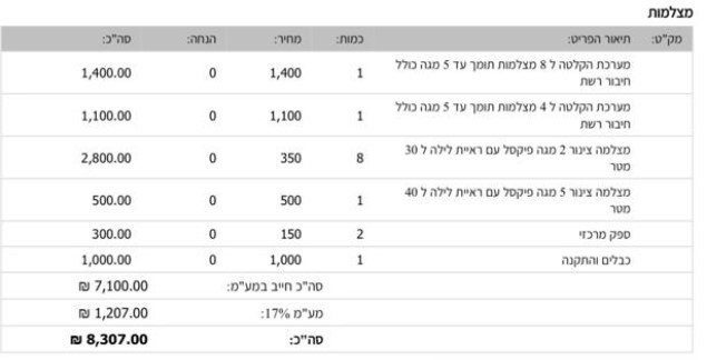 תגובה: מצלמות אבטחה - התייעצות