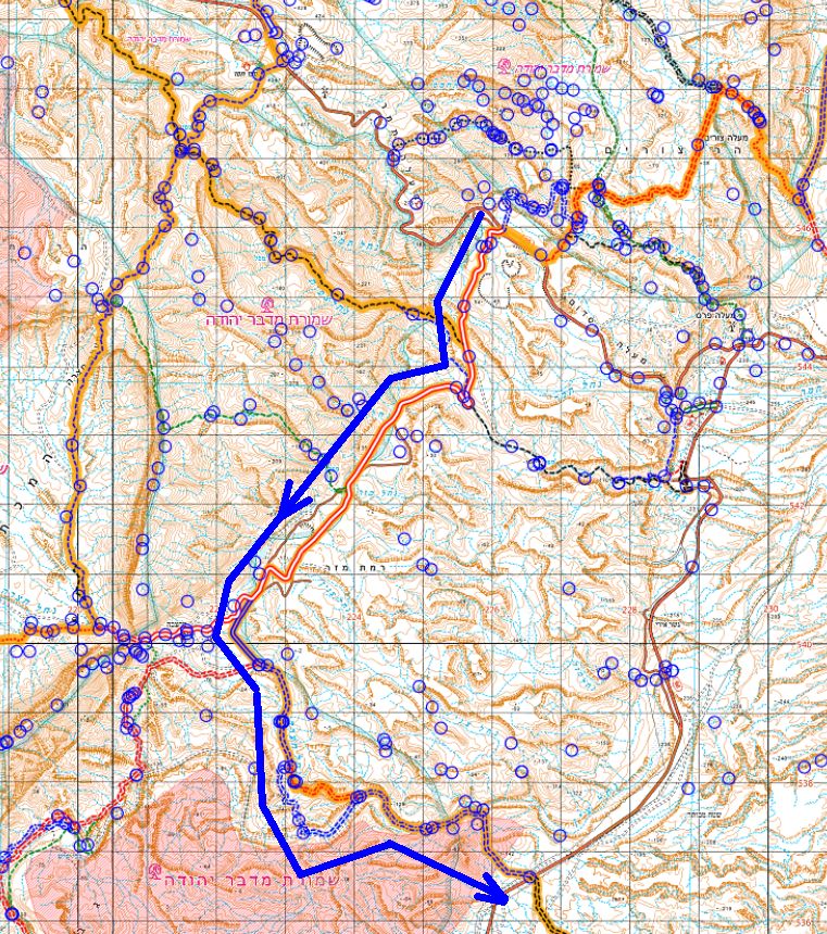 אני בכלל לא מגיע למעלה אשמדאי, אני יורד בשביל הכחול של נחל חצרה.
