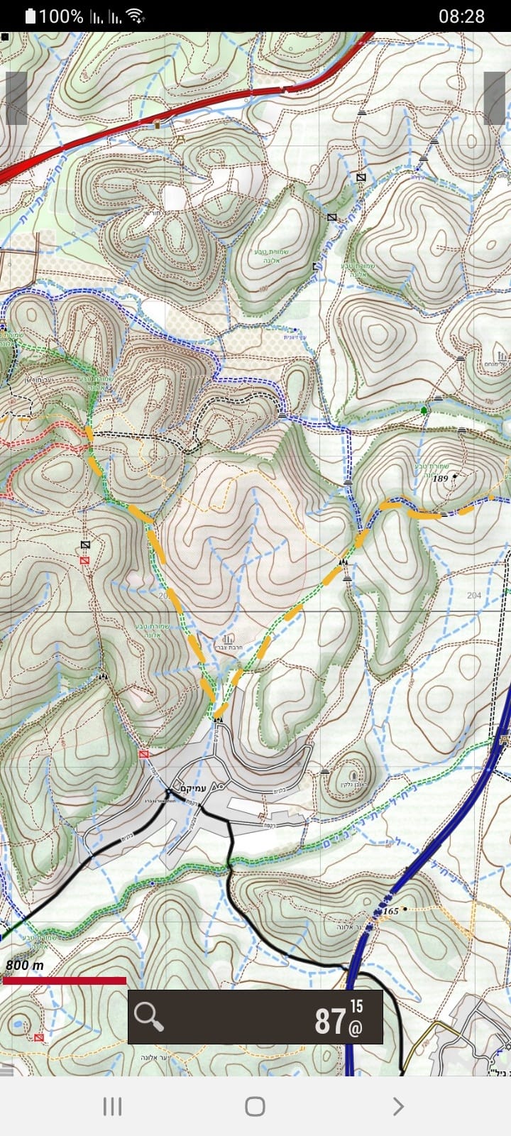 במסלול שהיצעתי זה בדיוק מה שמופיע. עליה עם הכחול מכיוון לגבעה ואז צפונה אל ראש הגבעה. אחר כך חזרה לכחול ומערבה עד לשביל מעמיקם ואיתו יורדים ממערב ל.נ.ג לכיוון הברושים.