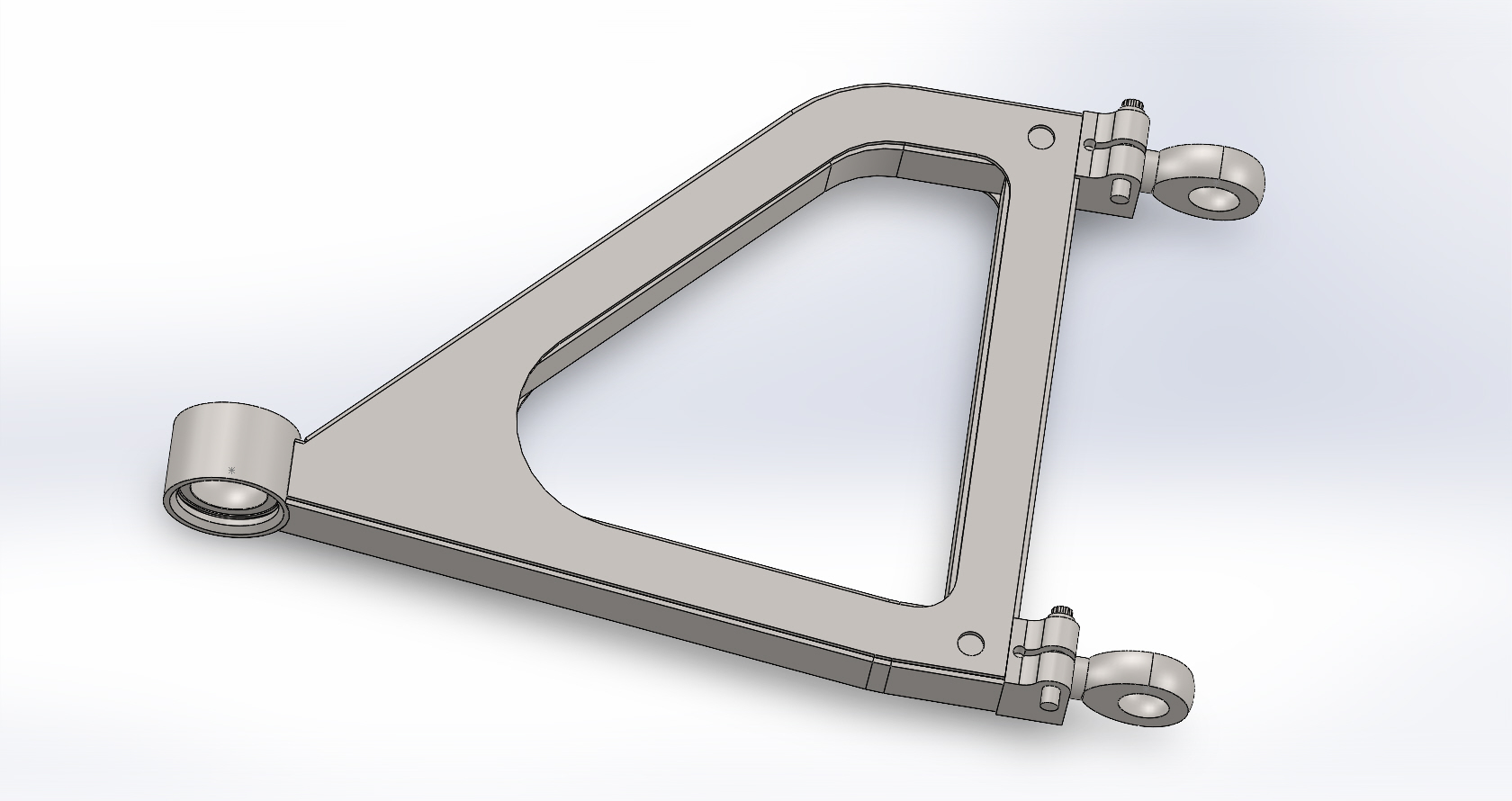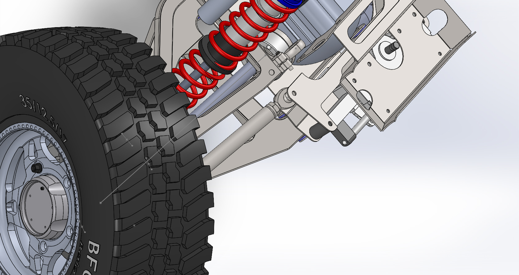 ברגע שבחרת לוותר על הבולם השני, ואצלך גם אין את המנוע מקדימה, אני תוהה למה נשארת עם הזרועות הכבדות עם המפתח הקצר? לא היה אפשר לשים פה משולשים מצינורות עם מפתח גדול ולחסוך הרבה משקל ופבריקציה? למה המשולש העליון לא מושך עוד הרבה קדימה? לא נראה שיש שם משהו שמפריע.