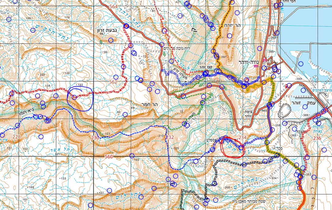 (אני חשבתי על האזור שסימנתי בכחול, לא נחל חימר אלא האזור שצופה עליו - שם גם מצאתי לרוב שאריות בקבוקי אלכוהול רבים)