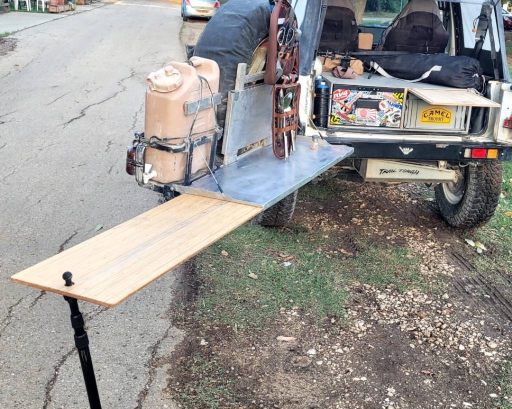 בחרתי בסוף בפלטת במבוק בעובי 13ממ כולל פינויים למסילות. כדי לבטח את הגמישות בעבודה במצב פתוח לגמרי התאמתי מוט טלסקופי שהיה לי בארון.