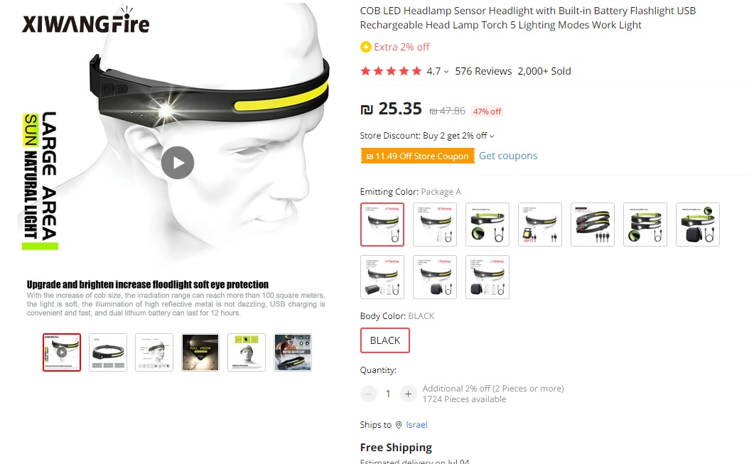מי שמכיר את מבצעי שלישיית-מוצרים-ב1.99 דולר של אפליקציית עלי-אקספרס (יש שם לא מעט מבצעים לא רעים לצד פריטים שלא כדאי לרכוש) אז יש מדי פעם גם פנסי ראש כמו שהוזכרו כאן.