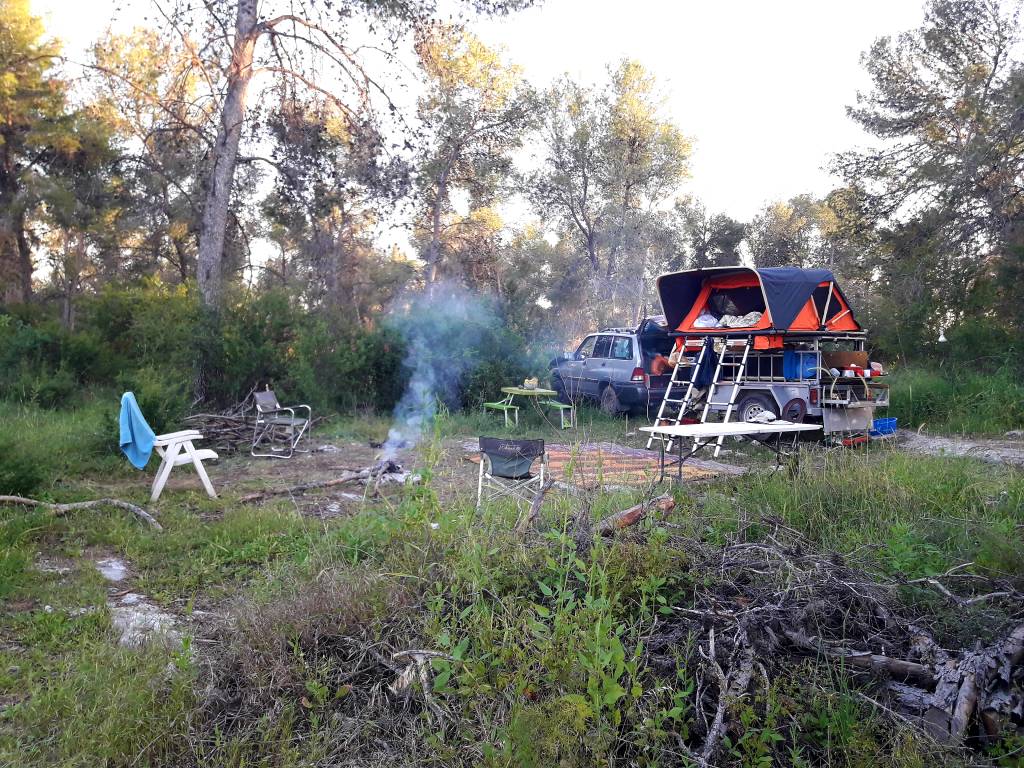 עם האוהל, הנגרר בדיוק בגובה הרכב (בתמונות פה הרכב מעט נמוך יותר אבל לאחרונה החלפתי קפיצים ועכשיו הם באותו גובה בדיוק) שזה גם נחמד מבחינה אווירודינמית, ונראה טוב (הכל בפרופורציה כן?..)