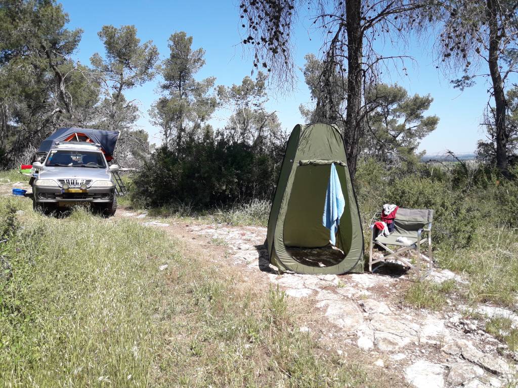 בעניין התאורה יש לי גרילנדה של 10 נורות מאמאזון ועוד כמה מנורות נטענות, בפועל אני כמעט לא משתמש, זה יותר מדי תאורה בשבילי. יש לי גם תורן דק מתקפל מאלומיניום שעליו אני יכול לתלות מנורה הנה בתמונה המצורפת. יש לי מקרר 50 ליטר ועם התאורה, המשאבת מים, טעינות טלפונים, כבר יצא לי לשבת באותו מקום 70 שעות והמצבר לא התרוקן. אבל זה לא היה בקיץ.