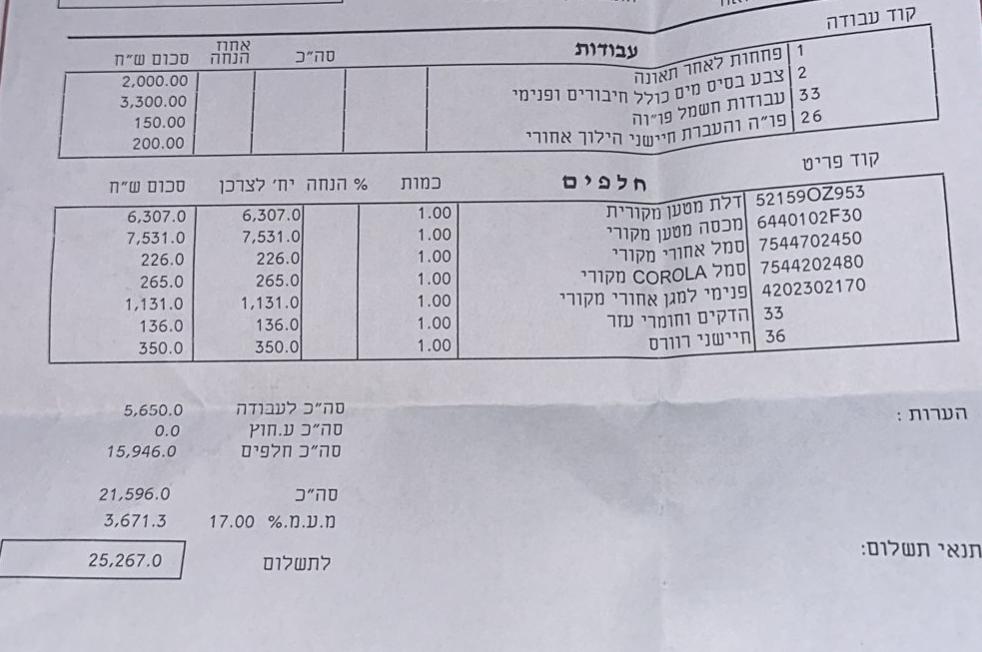 החלפת קורה, מעיכה בגג.. מעיכה בקורת חלון אחורית. מישהו שם נכנס בראבאק של האוטו.