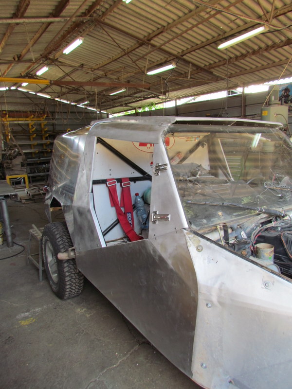 החומר הנבחר אלומיניום בעובי 1.5 מ"מ , תא נהג ונווט אטומים כולל דלתות , על הגג כונס אוויר לרדיאטור שממוקם מאחורי התא נהג / נווט .