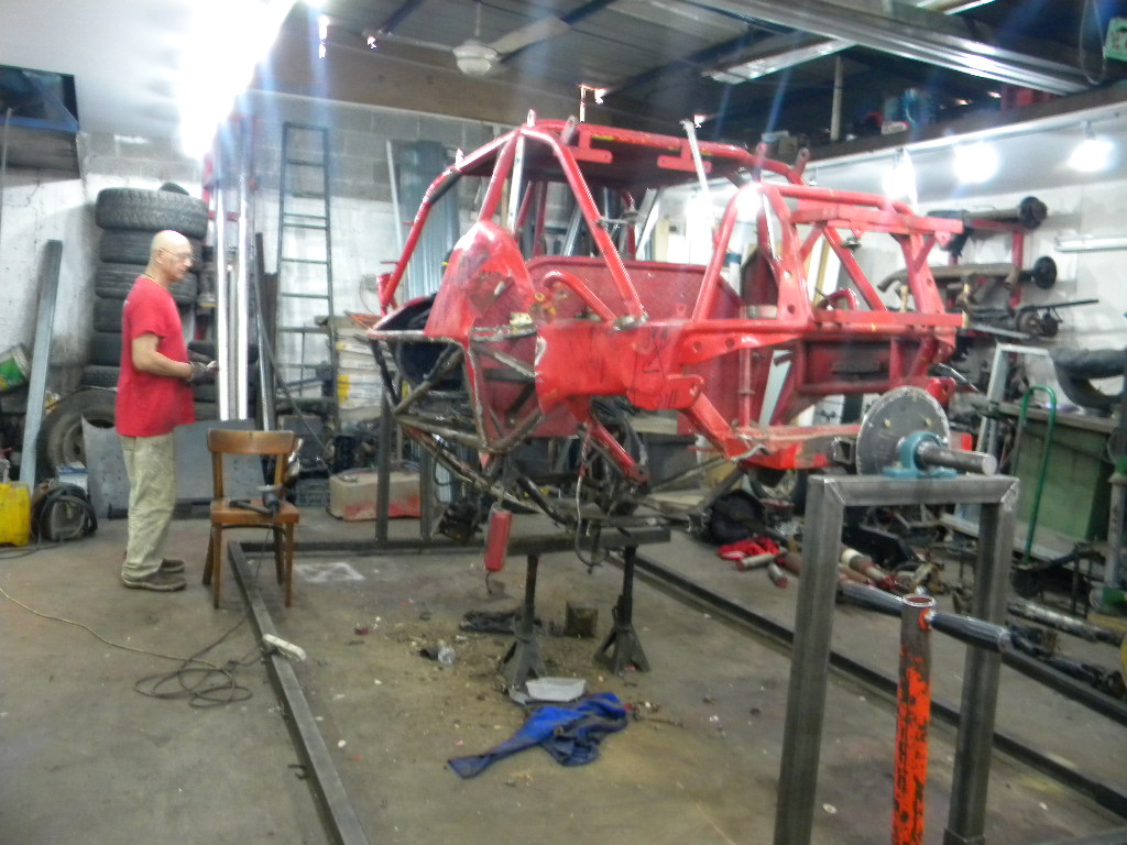 כמו שאתם רואים נבנה מתקן שבעזרתו ניתן לסובב את הרכב בזמן הבניה 360 מעלות וכך להגיע לכל מקום נדרש . כל מוטות הרדיוס יורדים ועוברים ציפוי ניקל , הסרנים יורדים לניקוי חול וצביעה מחדש , והמשך יבוא !!!!!!