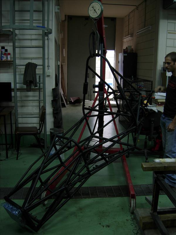 עם הגשם הגיע זמן לעוד עדכון. לבנות את המכונית לקח שנתיים, אבל היום ואתמול פירקנו את המכונית של השנה כמעט לגמרי (3 שעות בערך), מכמה סיבות. עבור חלק גדול מחברי הקבוצה זו פעם ראשונה שהם ממש מתעסקים בחלקים הפנימיים של רכב, וזו הזדמנות מעולה לראות כיצד הוא מורכב. מעבר לזה רצינו לשקול ולמדוד את החלקים כדי לקבל מושג על המשקל של כל מערכת בנפרד, לטובת השוואות ומידול יותר מדויק. עובדה מעניינת היא שמשקל אפרייט קדמי עלה ב500 גרם בערך ביחס למשקל של החלק המקביל מ2006 (שקשה לדעת כמה הוא היה מחזיק). חוץ מזה היה מעניין לראות מספר נקודות לשיפור ברכב החדש: מיסבים ספריים שיצאו מהבית שלהם במשולש המתלה, ספייסרים שהתעוותו ועוד כהנה וכהנה. הרכב יבנה מחדש בשבועות הקרובים לאחר שנחליף ברגים, יגיעו ליבות חדשות לחישוקים (אלומיניום 7075 T6 במקום מגנזיום הפעם), נארגן ציוד ונסיים להכין תיקי ניסוי לנסיעות הבאות.