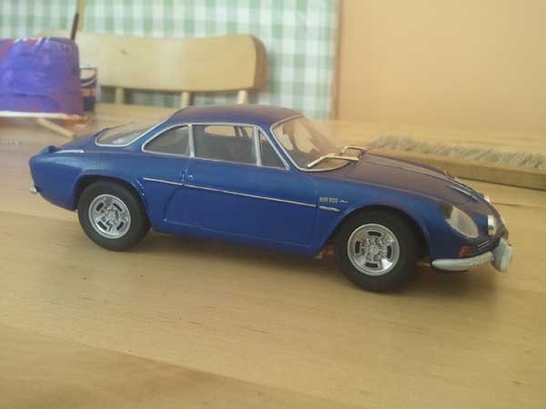 וזו רנו-אלפין A110, מכונית ראלי הסטורית של סוף שנות השישים, מנוע אחורי וכו'. מודל נהדר של TAMIYA שכרגיל אצלם מדוייק ביותר ואיכותי להחריד בקנ"מ 1:24. כולל תחתית ריצפה מפלסטיק שקוף שמאפשרת לראות מכלולים שונים מלמטה.