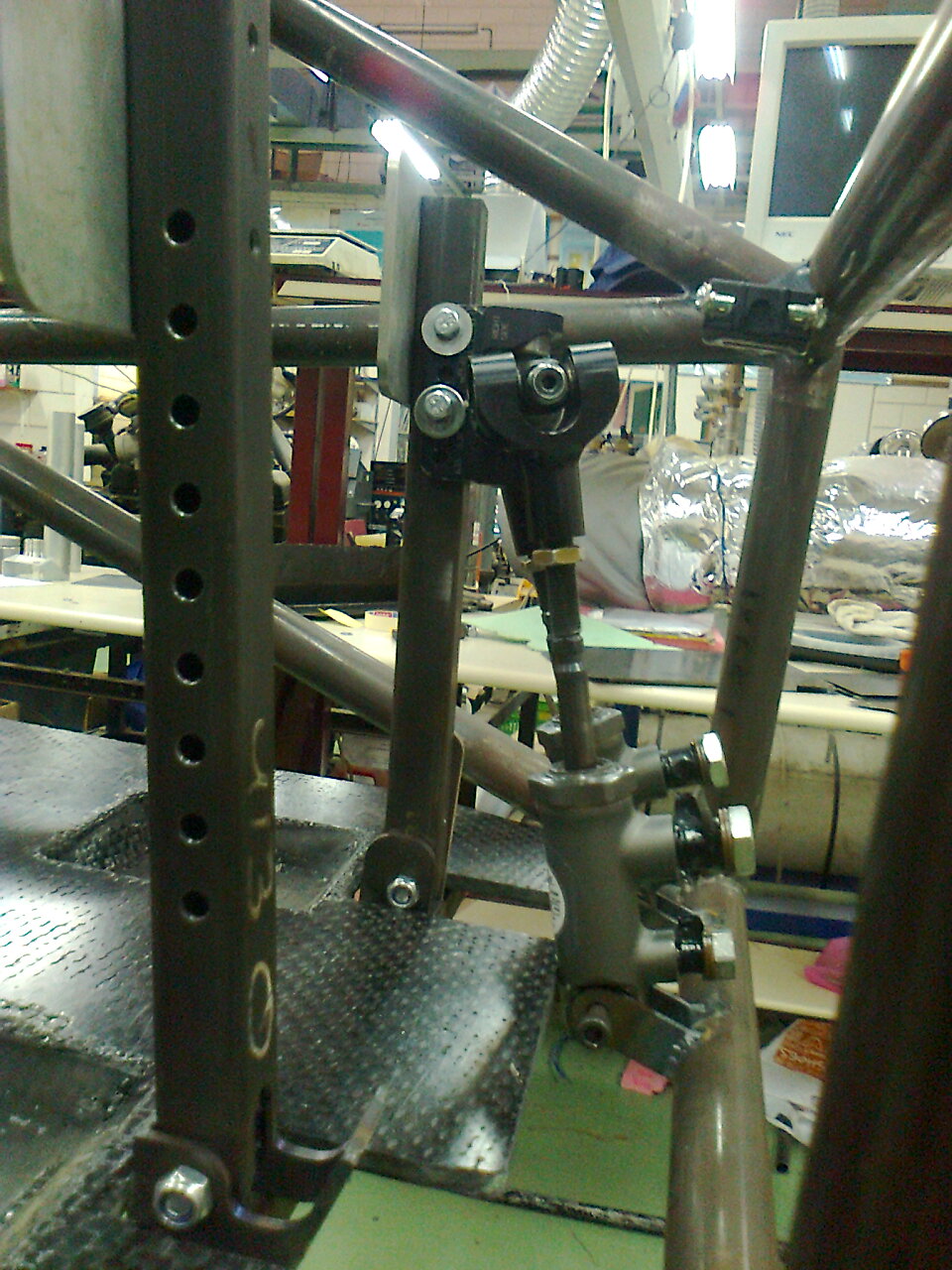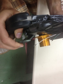 הדבר השני שנעשה בהמלצת החבר'ה משנה שעברה הוא מעיכה של קצות הצינורות במשולשים וחיבורם לבית מיסב טבעתי. זה לא מאוד יפה אבל הבית מיסב קטן בהרבה וכאן יש חסכון מוערך של 650 גרם.