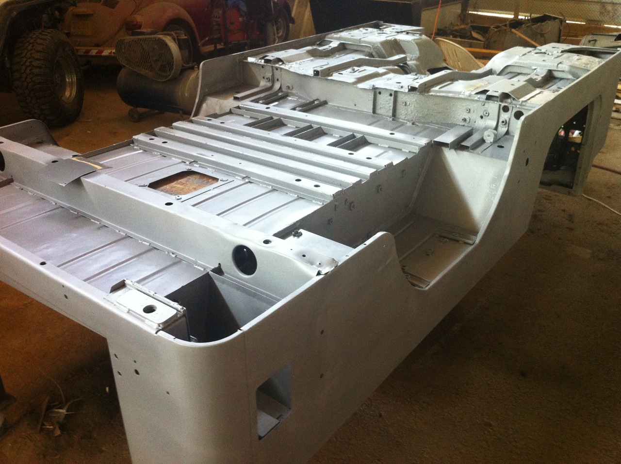 מסתבר שהבודי הראשון שהבאתי עבר התעללות קשה למרות שהיה נראה טוב. כשהתחלתי לנקות , גיליתי שכבות של שפכטל ופחים מודבקים, ומתחת לכל זה הרבה חורי ירי וחלודה. המשכתי לעבוד בלי הרבה חשק אבל עם הבנה שזה סוג של בית ספר.