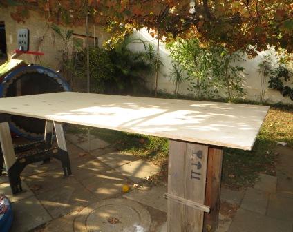 פלטת העץ היא פלטה סטנדרטית 17 מ"מ 244*140, אני לא זוכר את שם העץ אבל זאת הייתה הפלטה הכי יקרה של הנגר (היא יודעת לשרוד תנאים של גינה).