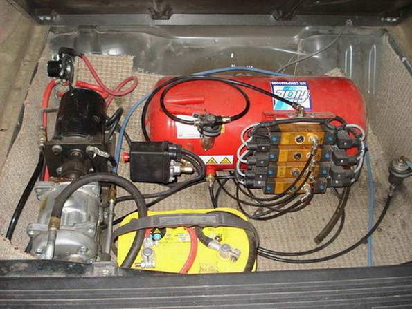 ראיתי שימוש בצנרת של מגן חזירים או במסגרת ארגז בטנדרים כמיכל לחץ אויר. מבחינת נפח נכנס שם לא מעט.