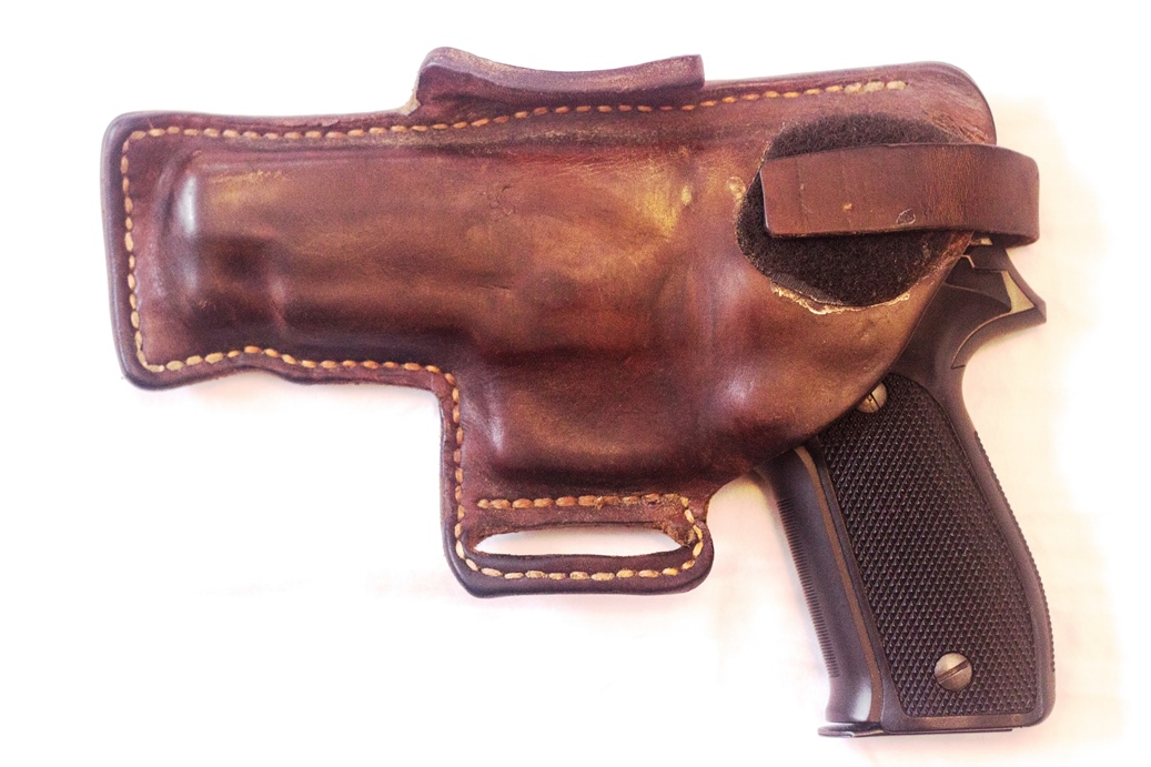 עור עם תפר גם מלמעלה שנתפר בדיוק לאקדח ספציפי (ויש תהליך נוסף להתאמה מירבית), לא נותן לאקדח ליפול, ומצד שני קל לשליפה.